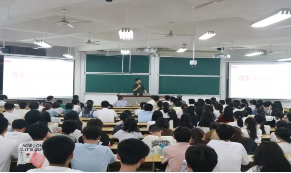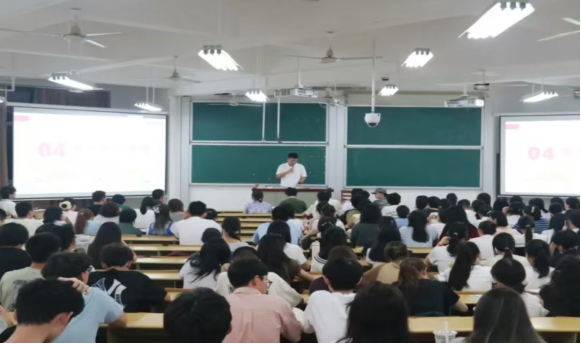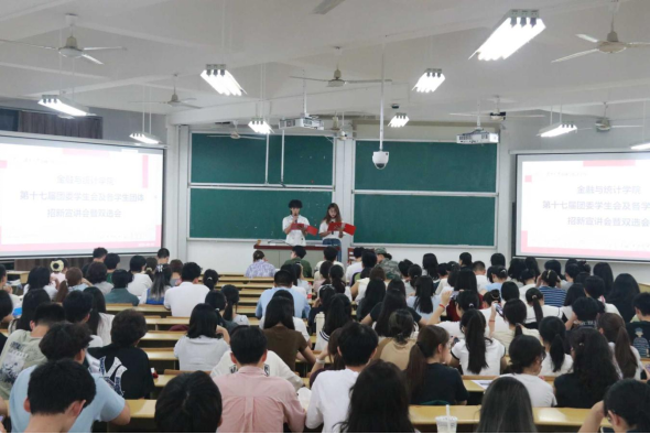 随后,曾晓铭为大家介绍了金融与统计学院团学组织架构,10个核心部门协同发力,团学一体化方案保障高效运转。他讲解了骨干培养的五大制度“选拔、培训、考核、奖赏、退出”。他介绍了团学重点工作开展,在思想引领方面,通过多样活动凝聚青年,落实相关制度,推动思想从理论到实践。同时,团学聚焦于服务同学成长,在学业与职业发展,权益维护,文体与劳动教育,志愿服务等方面均有建树。他回顾团学过往成绩,以自身经历鼓励同学们加入,为团学注入新鲜血液,共同书写青春篇章。